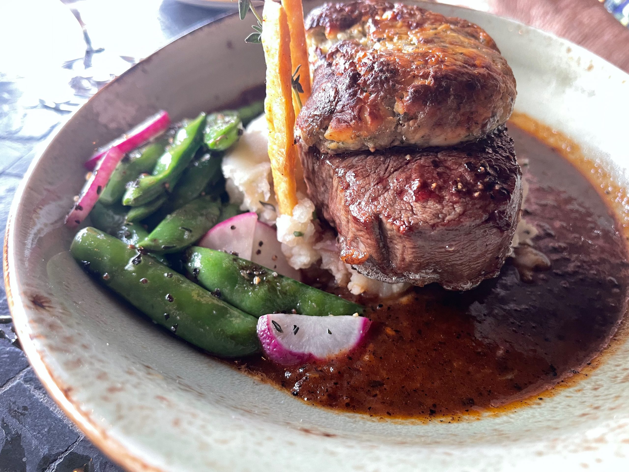 BEST BET: Chocolate Walnut Torte, Gorgonzola crusted Beef Tenderloin, Lemon Snapper, Baked bacon-wrapped dates, Red & Golden Beets