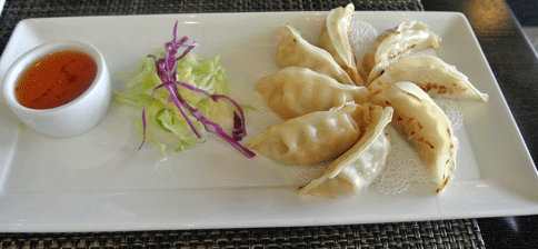 1 February 2014: Although Thai food can be very filling, it’s such a palate exciting cuisine to eat that you’ll want to sample at least two appetizers. Make one of them gyoza, an Asian dumpling commonly known as a “potsticker” or “dumpling” in America. Although most widely associated with Japanese cuisine, gyoza actually originated in China, but are common throughout Asia. At Tara Thai, the gyoza appear to be steamed then pan-grilled, my favorite method for preparing these delightful pockets. Tara Thai’s gyoza are engorged with chicken and mixed vegetables then served with a sweet chili dipping sauce. This eight-piece starter is artfully plated, but the true artistry is in their deliciousness.